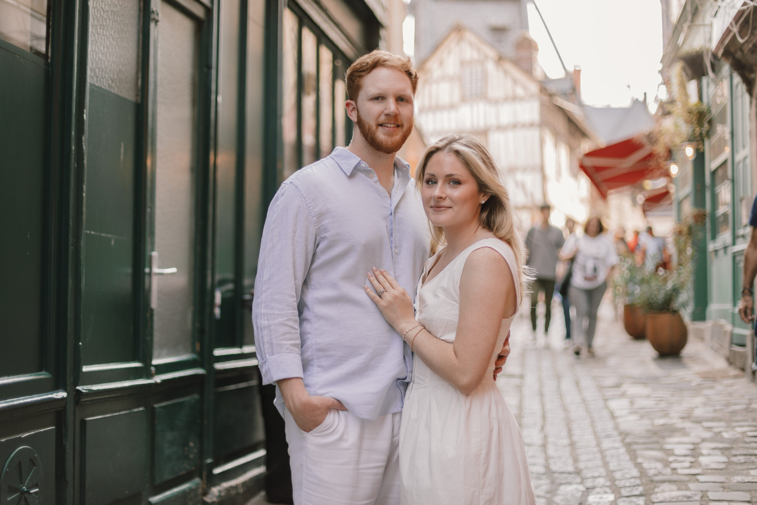 La Normandie, c’est une histoire de lumière. Elle change à chaque minute, caresse les visages et transforme un simple moment en souvenir vibrant. Pour un couple, c’est un terrain de jeu infini : entre mer, falaises, villages et jardins, chaque lieu peut devenir un décor d’amour. Voici quelques endroits que j’aime particulièrement pour une séance photo de couple sincère et élégante. Vous vous demandez où faire vos photos de couple en Normandie ?Découvrez mes lieux préférés dans cet article.1. Honfleur : douceur et poésie pour vos photos de couple en NormandieHonfleur, c’est toujours un peu un coup de cœur.Les ruelles pavées, les façades anciennes, le port qui miroite sous la lumière du matin… Chaque recoin a quelque chose à raconter. J’aime commencer la séance près du Vieux Bassin, puis monter